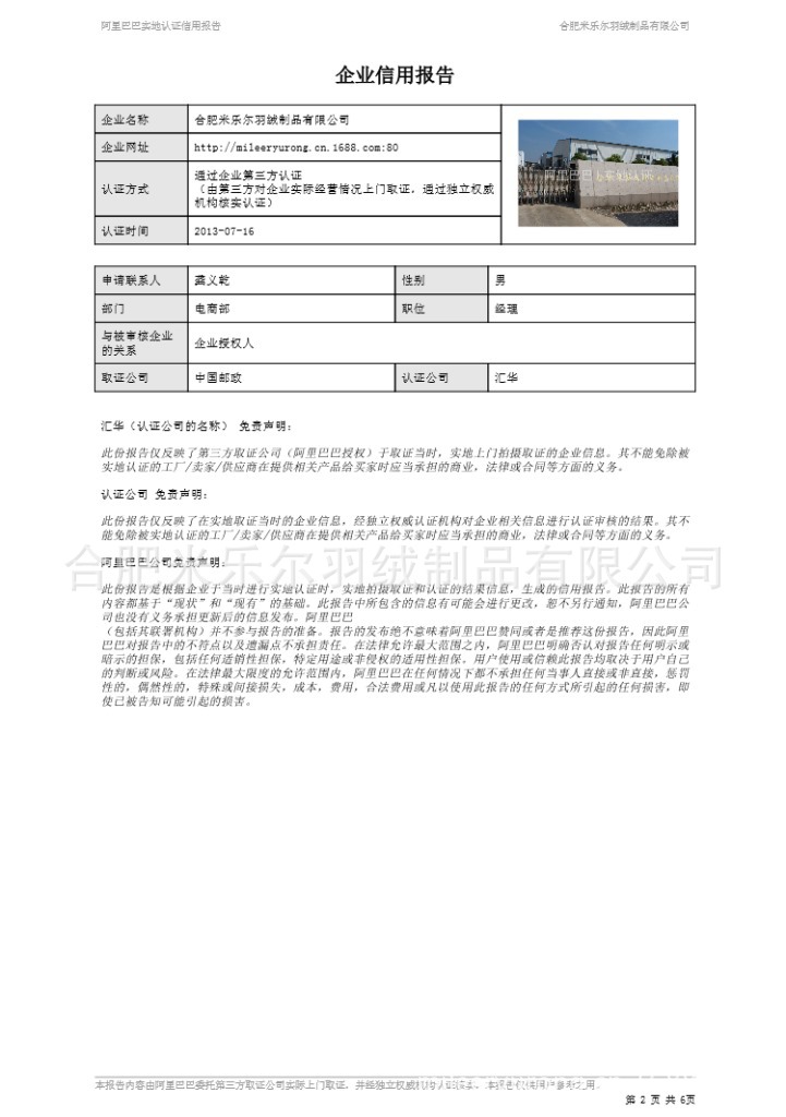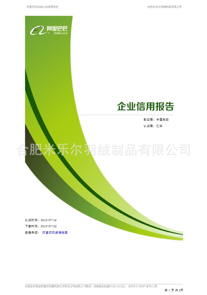 合肥米樂爾羽絨制品有限公司創始于1988年,坐落于合肥新站開發區,緊鄰G40滬陜高速,地理位置優越,公司秉承“以市場為導向,以質量求生存”的經營理 念抓住機遇大膽開拓,不斷創新,始終把質量、服務放首位。公司擁有先進的水洗、分毛設備各4套,拼堆機一套,產品質量的穩定性得到客戶一致認可;主營產品 有白鴨絨、吊吊絨、灰鴨絨、白鵝絨等日標、美標多種規格。銷售網絡遍布全國,產品出口日本、歐美的多個國家,年營業額達2億。