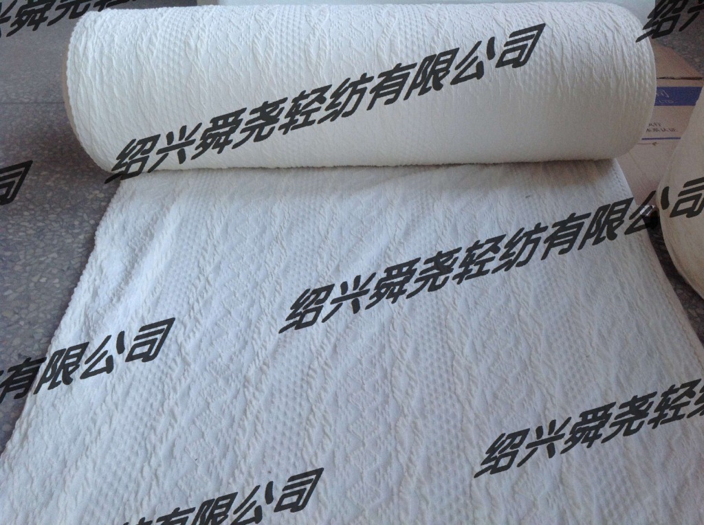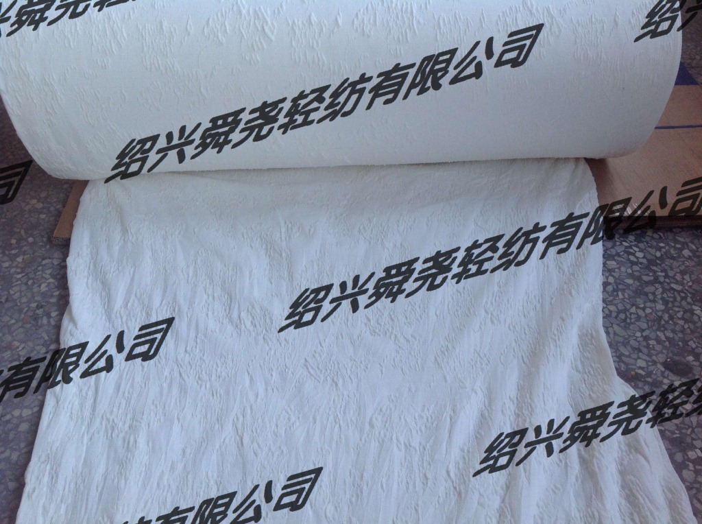 提花面料----面料上的花紋是織出來的,不是普通印花 ,也不是繡花 。 面料織造時用經緯組織變化形成花案,紗支精細,其針線密度高,使用起來不變形,不易褪色,舒適感好。 目前提花在市場上很受歡迎。