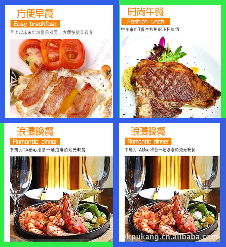 6.適用于加工各種燒烤、烙、煎的食品,如大餅、餡餅、發面餅、鍋貼、玉米餅、烤肉、煎魚、油燜大蝦等