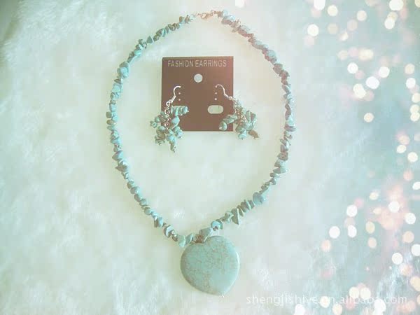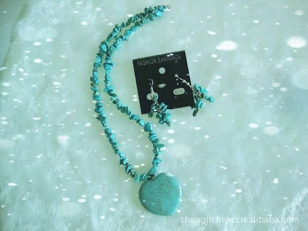 產品明細〗40MM心形 1顆、5*9mm松石碎石長 60CM