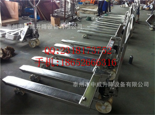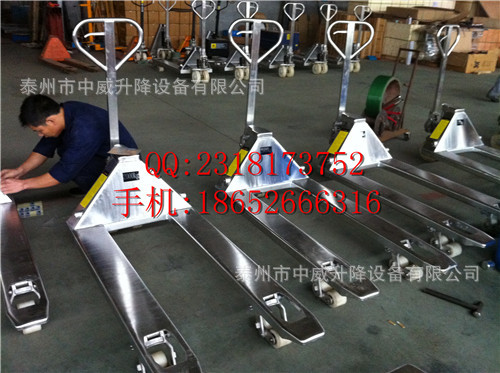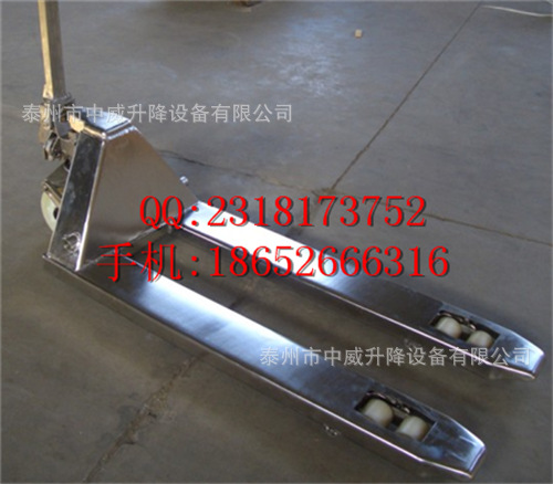 1、所有部件都由不銹鋼制成包括液壓泵、貨叉架、手柄、推桿、軸承、插銷和螺栓等等。