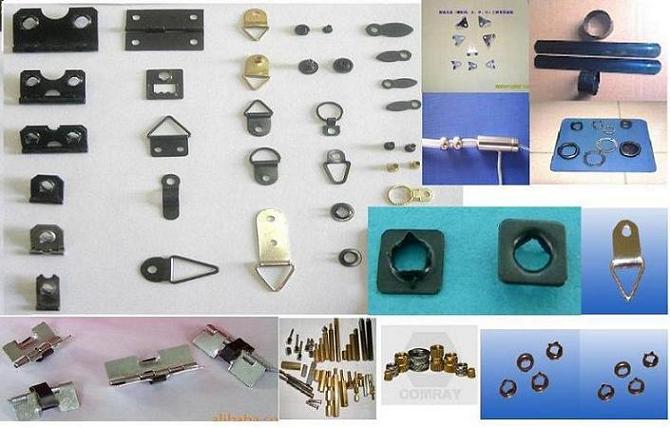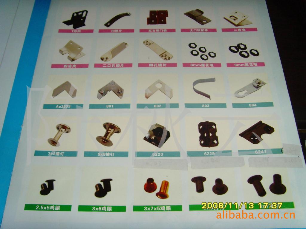 相框五金配件;端子;車件;銅雞眼;首飾盒鉸鏈;喇叭碼;耳機鋼網(wǎng);螺絲;銅柱;排插銅片;U型螺絲;螺栓;