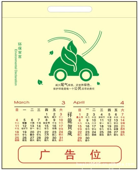 無(wú)紡布掛歷由7個(gè)無(wú)紡布袋裝訂組成,掛在墻上可當(dāng)掛歷使用,拆下來(lái)可單環(huán)保袋使用,既環(huán)保又實(shí)用,產(chǎn)品可以按要求制作尺寸,印刷商標(biāo),非常適合拿來(lái)做促銷(xiāo)禮品、廣告禮品。現(xiàn)在大家都在講環(huán)保,講低碳。而我們的環(huán)保掛歷采用的是布料循環(huán)利用制作成的無(wú)紡布,取材用意新穎,美觀兼具資源二次利用的環(huán)保主張,開(kāi)創(chuàng)了掛歷新風(fēng)尚,獨(dú)特的產(chǎn)品設(shè)計(jì)已獲國(guó)家實(shí)用新型專(zhuān)利,是企業(yè)展示低碳經(jīng)營(yíng)發(fā)展理念與友情饋贈(zèng)之佳品。
