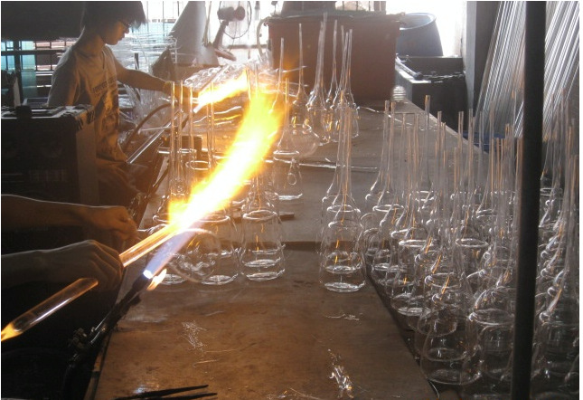 我廠擁有池爐一座,日產量40噸,工藝有,人工吹制,機吹,機壓,制瓶機等.主營產品:方缸圓桶花瓶玻璃香水瓶酒瓶管材燈泡酒杯煙缸燭臺等.加工有,烤花酸洗噴砂噴色等.我司以優質的服務,優惠的價格,在玻璃界奠定了良好的基礎,歡迎廣大客戶來電或來圖咨詢.