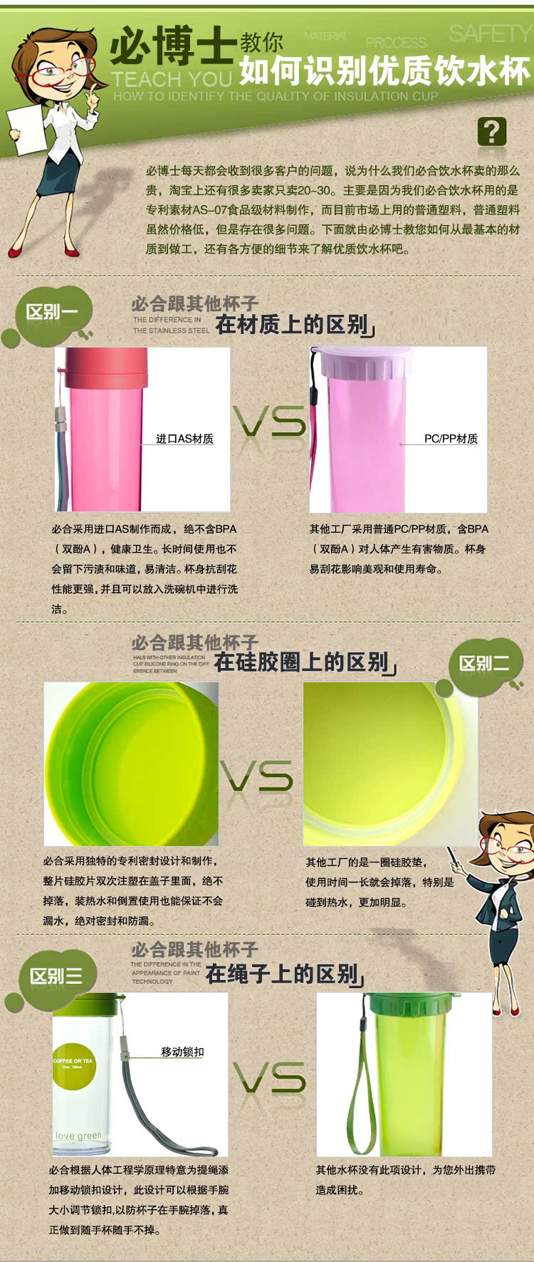 杯身:采用專利塑材AS-07食品級(jí)材料制作,健康安全