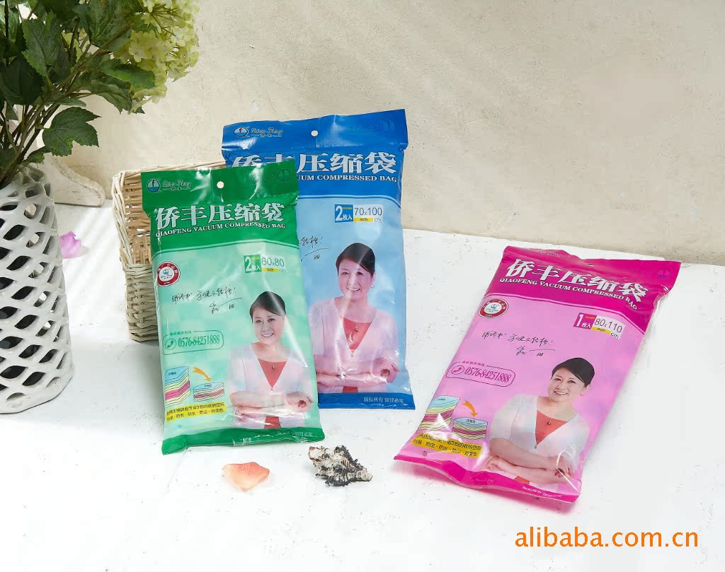 僑豐真空壓縮袋,9絲精品裝(也稱加厚版),高檔PE PA復合,可使用多年,無論在厚度上、柔韌性上、反復使用時間上,都是其他品牌的同類壓縮袋所無法比擬的。