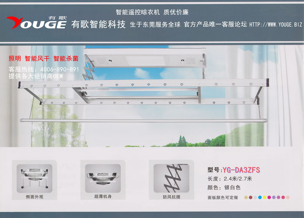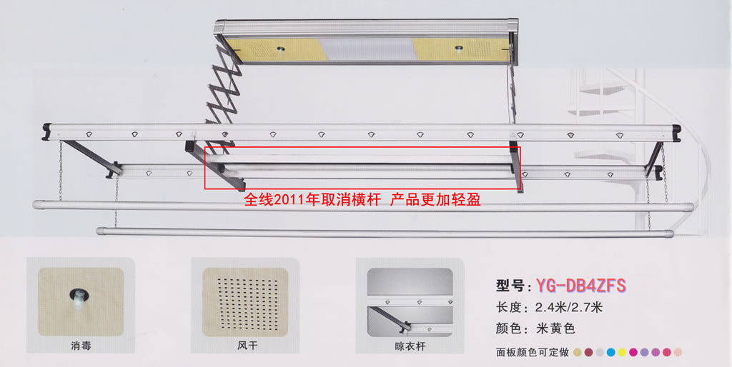 YG-DB3ZFS:三桿,豪華,照明、風(fēng)干、殺菌功能(可以同時(shí)晾被子和衣褲)