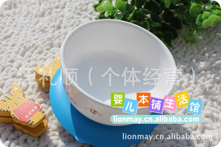 產品特點:小熊吸壁碗的底部附有吸盤可以將碗牢牢吸在桌上,不用擔心寶寶將碗弄倒打翻,隨著寶寶的成長可以拿掉底部的吸盤。