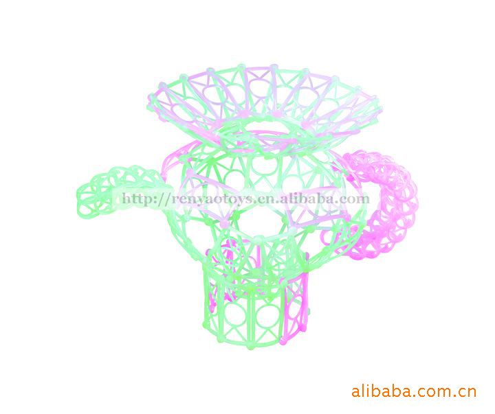 此款玩具為環保材料加熒光粉制成,無毒無味,安全質量好。質地非常的柔軟,小朋友可以任意組合,怎樣折扭也不會斷裂,晚上照射燈光后關燈會發亮。
