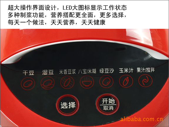 3、智能溫度控制器,利用可控硅技術,多級功率調節,縮短制漿時間5分鐘,可測量水溫,根據水溫進行程序調整