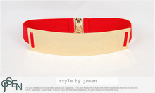 歐美風(fēng)金色金屬鏡面扣頭個(gè)性女款松緊細(xì)款腰帶 批發(fā)