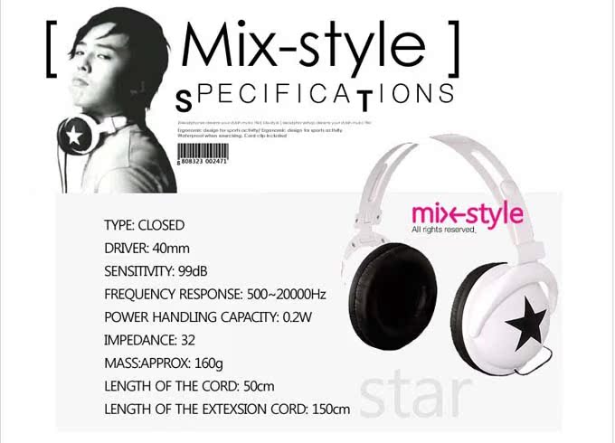 【一件起批】mix-style大星星耳機(jī)、MP3耳機(jī)
