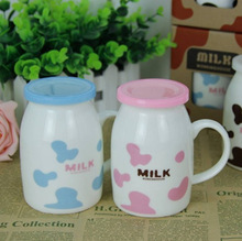 新款迷你帶蓋小號奶牛杯 多色簡約水杯 馬克新骨瓷杯 廠家直銷6.20