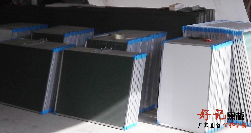 “好記”黑板采用本廠專用進口涂層烤漆鋼板,用獨特配制膠水與泡沫板或瓦楞板,再加背面鍍鋅板共三層固定好,用重物壓二十四個小時,平整后四邊用鋁合金【茶色,銀白色】包邊打好鉚釘,四角用ABS工程塑料連接,按照尺寸大小配套可移動鋼架,可定做各種規格,也可配套不銹鋼架,鋁合金此款經久耐用,美觀實用。