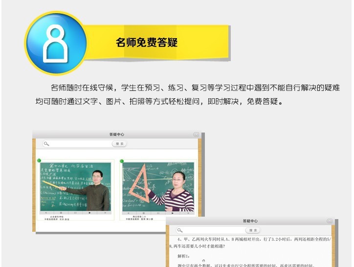 名師隨時(shí)在線守候,學(xué)生有疑難可隨時(shí)通過文字、圖片、拍照等方式輕松提問,即時(shí)解決,免費(fèi)答疑。