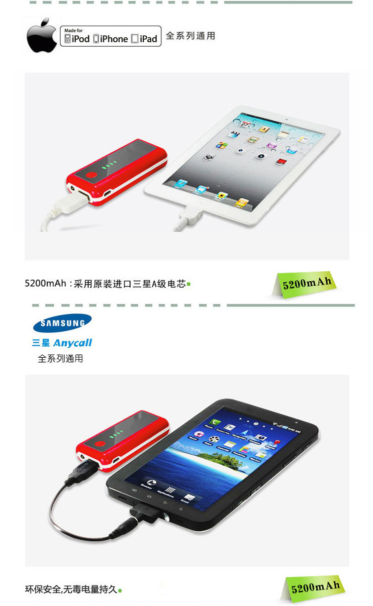 5、 即插即用,采用USB端口供電輸出,插上數(shù)據(jù)線即可實(shí)現(xiàn)隨身、隨時(shí)充電。
