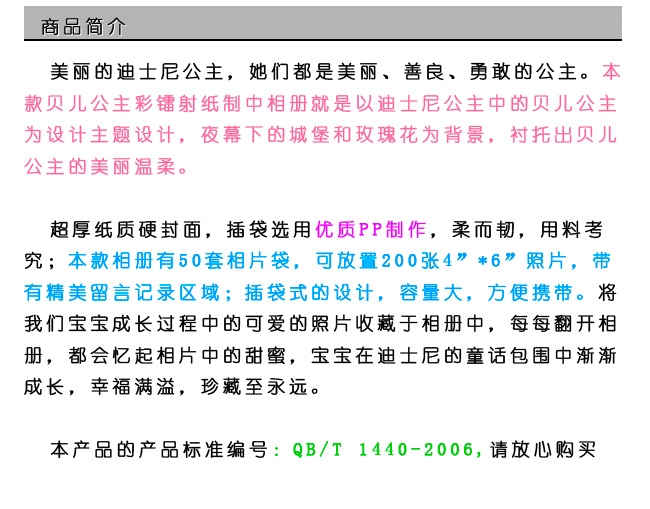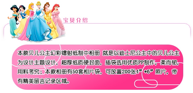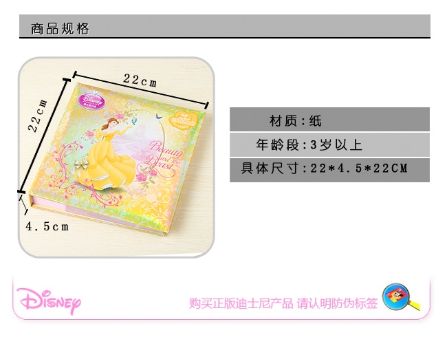 正品迪士尼 貝兒公主幻彩鐳射紙制中相冊 相簿