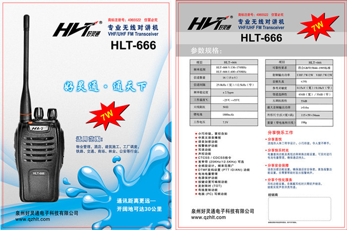 距離王30公里 好靈通專業無線對講機廠家HLT-666帶擾頻高功率7W