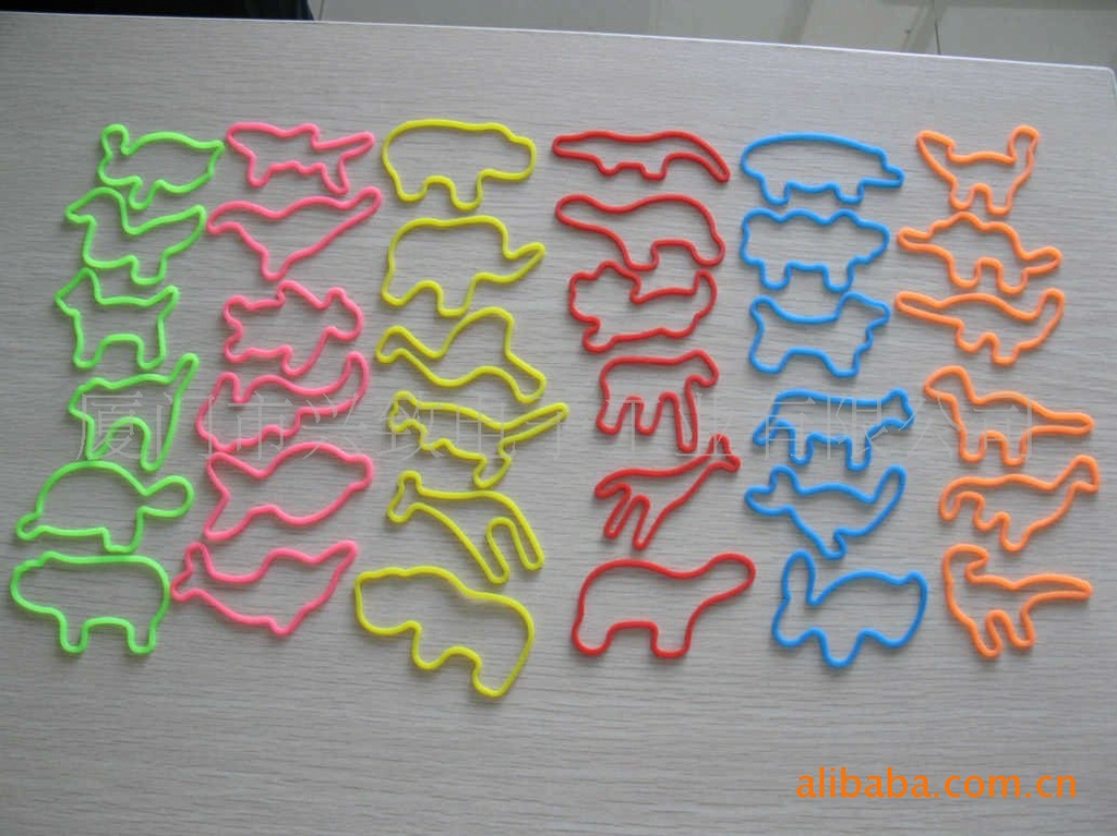 供應動物系列、字母系列、數字系列等等硅膠皮筋,無毒環保。可用于日常捆扎使用,也可用于掛件裝飾。也供應其他形狀皮筋。