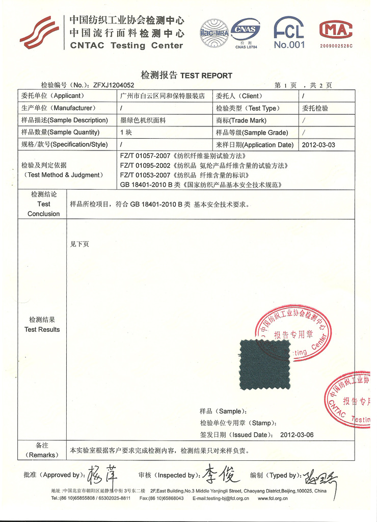 咱遠赴高端紡織面料中心的紹興與布商反復協商溝通才特制的面料,也就是說現在的面料是高端定型無尺碼問題的,且面料比以前更棉更舒適更挺括顏色更飽滿,絕非盜版可以仿到的哦!下面有褲子的品質報告哦!達到國家一等品環保標準的!經過第三方認證不會退色且含棉量高達97%的彩棉彈款哦!!!親們放心訂購哦!