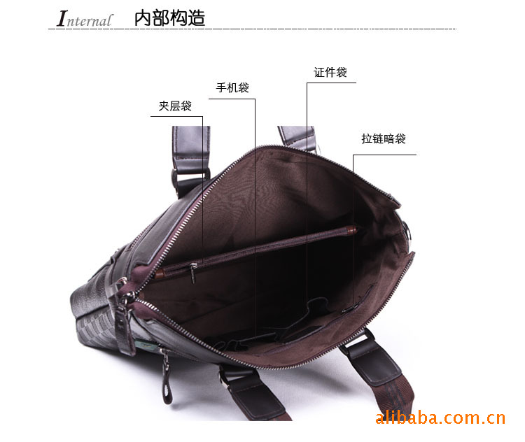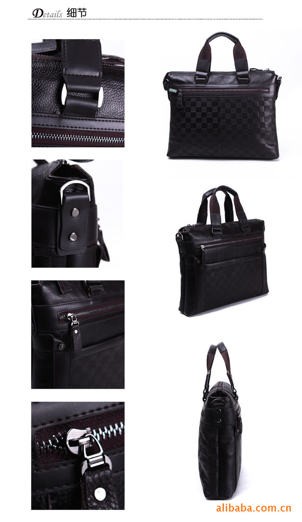 儒雅紳士系列 純牛皮典雅格紋手提包 單肩包 公文包