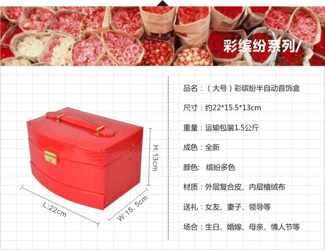 【新款力薦】供應(yīng)精致大號彩繽紛半自動(dòng)首飾盒 多色可選