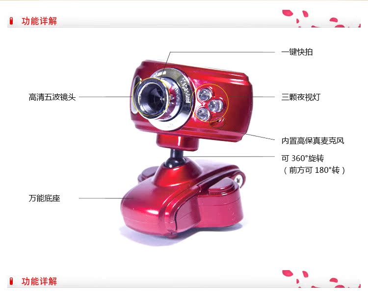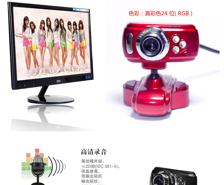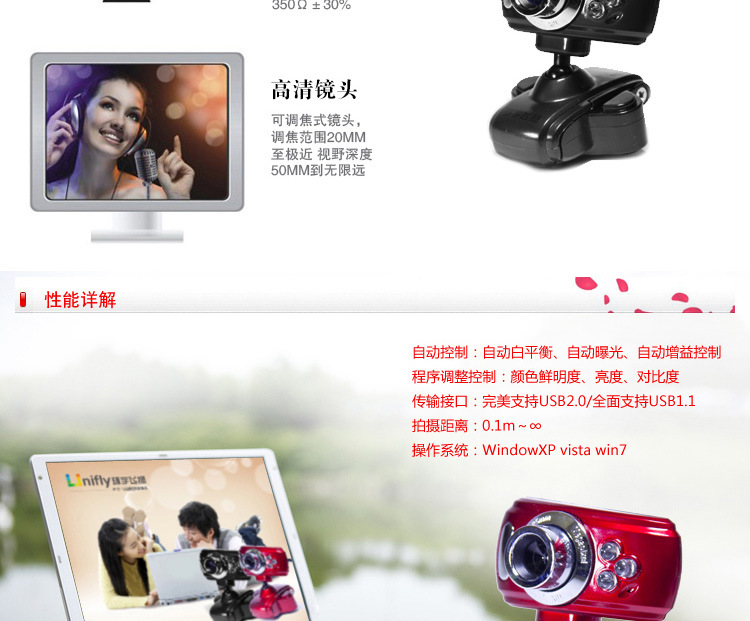 免驅設計,采用USB 2.0接口,即插即用,不用任何設置即可享受高品質的視頻通話效果。