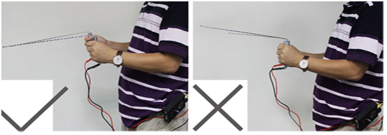 使用者必須以放松姿勢站立,兩腳稍微分開,雙臂緊貼身體但不要太緊。握住接收桿時,手掌和手腕不宜太用力,使其在手中自動達到平衡狀態,并始終相互平行。手握桿時,使其與地面平行,以增加其敏感性,或稍微向下傾斜5-8°,達到更好的平衡狀態(若你是的分子頻率探測的新手)。最重要的一點是練習持桿的方法,直到兩桿不再相互“移開”。