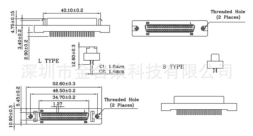 注解:DB50pin直腳兩排夾板式母頭,可夾板(PCB)的厚度為1.2mm和1.6mm,常規產品均為夾PCB板1.6mm的,采購時請確認PCB的厚度,該產品因有定量要求,下單時請確認交期,謝謝!