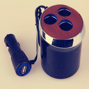 ***新款韓國紅酒系列USB一拖三電源分配點煙器一分三點煙器帶USB