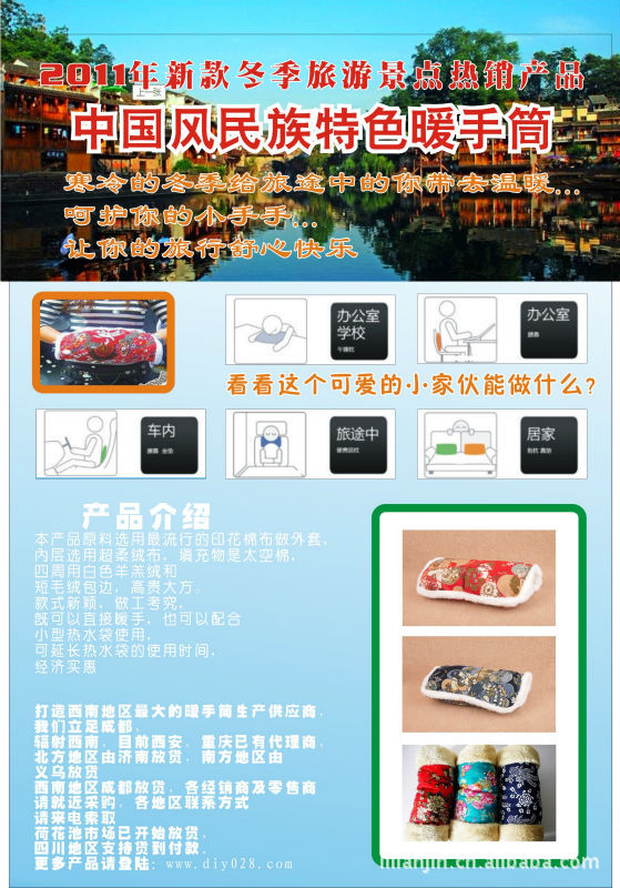 使用方法:兩手從兩邊插入暖手筒中,既暖和又舒服溫暖整個冬季!