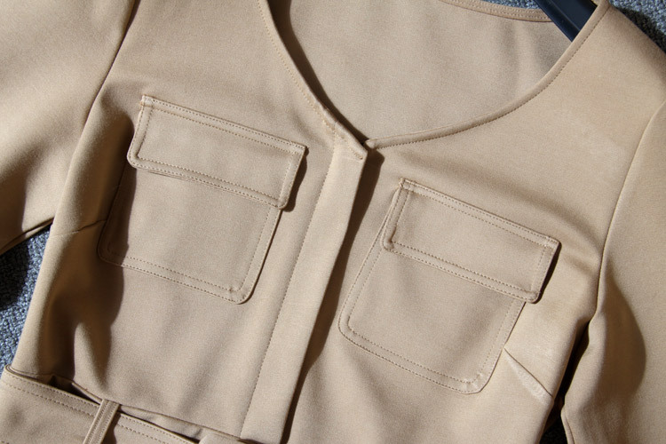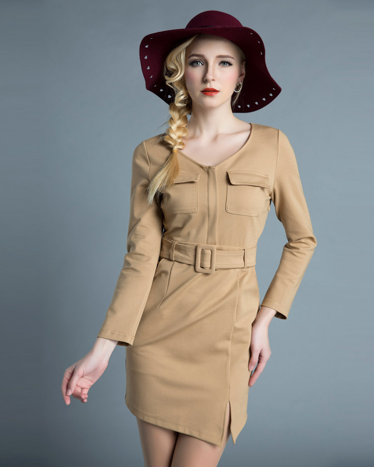 歐洲站***女裝廠家***5春裝新款BAA095V領口袋修身連衣裙子