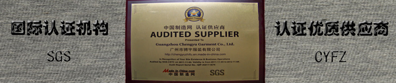 廣州市騁宇服裝有限公司自2011年11月份通過了***SGS優(yōu)質(zhì)供應(yīng)商認(rèn)證,公司具有雄厚的資金、強(qiáng)大的生產(chǎn)實力,公司面積近2000平方,公司一線生產(chǎn)工達(dá) 100 多人,同時在內(nèi)地有多家長期合作伙伴,其員工均在500人以上,主要生產(chǎn)復(fù)雜、量大、高質(zhì)量產(chǎn)品,在內(nèi)地生產(chǎn)我們不但保證質(zhì)量,同時價格也有比較大的優(yōu)勢,我廠主要生產(chǎn)中***至二線或三線品牌。歡迎來電話咨詢。