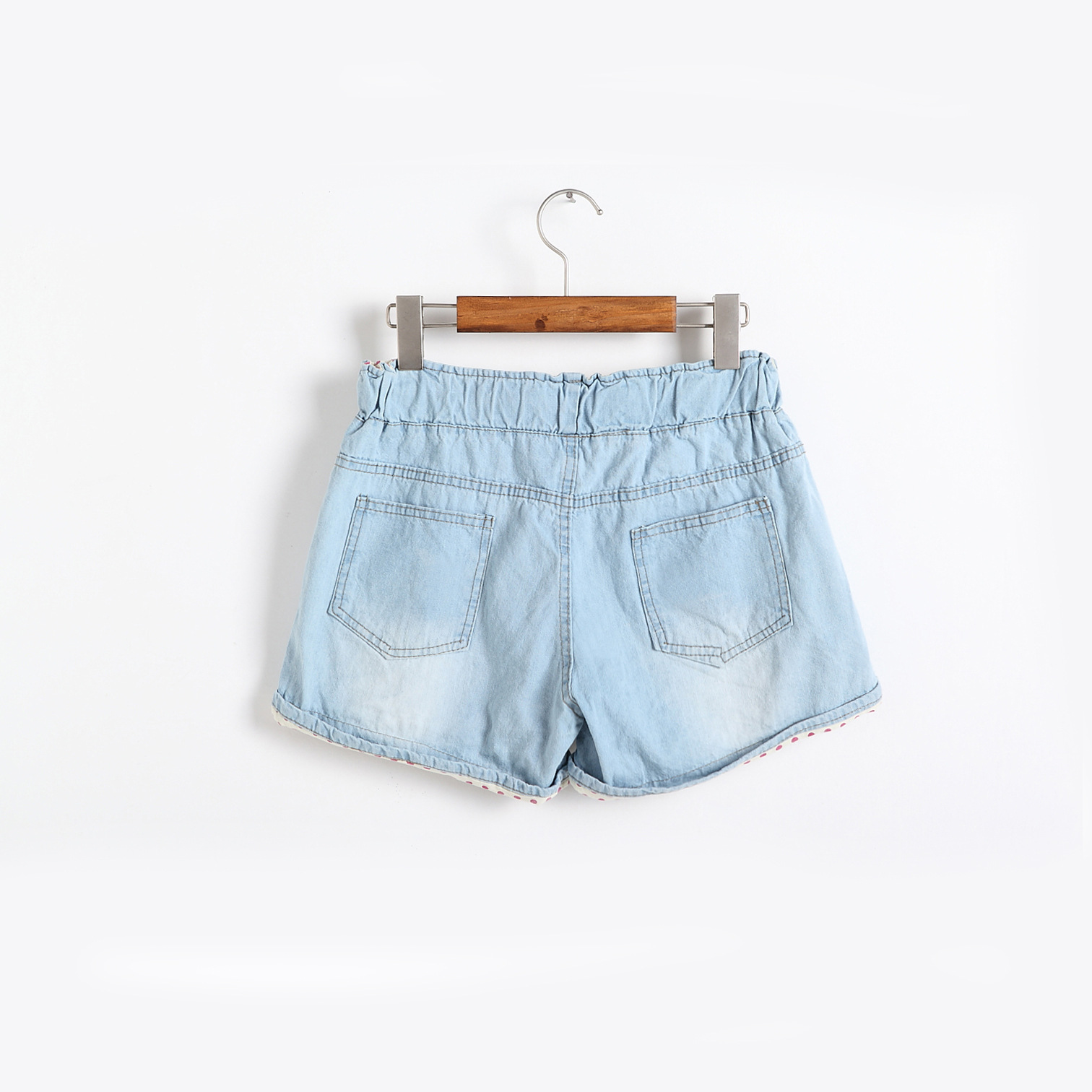 這是一款時尚的街頭牛仔短褲,淡色得有點小清新, 舒適的面料顯瘦的款式,四季可穿,百搭***