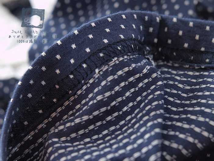 秋季***打底單品 海軍風(fēng)翻領(lǐng)圓點點棉長袖Tee藍色