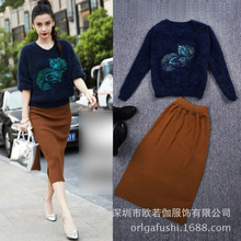 巴黎時裝周劉詩詩明星同款毛衣打底針織衫毛呢裙子時尚套裝女秋冬105.00