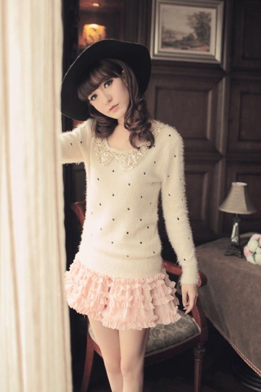 領口還有可愛的亮片金領,有著畫龍點睛的作用,小華麗的點綴效果很棒呢!