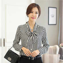 襯衫女長袖秋裝新款韓版條紋女裝秋冬打底雪紡衫蝴蝶結女式襯衣¥33售出1563