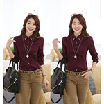 2015秋裝新款韓版女式職業修身拼接蕾絲長袖襯衫純色百搭白領開衫¥35.00售出8857[營銷助手]提供