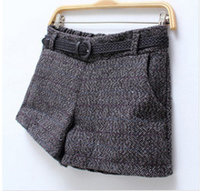 2015秋冬新款潮女休閑褲麻點(diǎn)厚毛呢短褲呢子靴褲 闊腿短褲批發(fā)