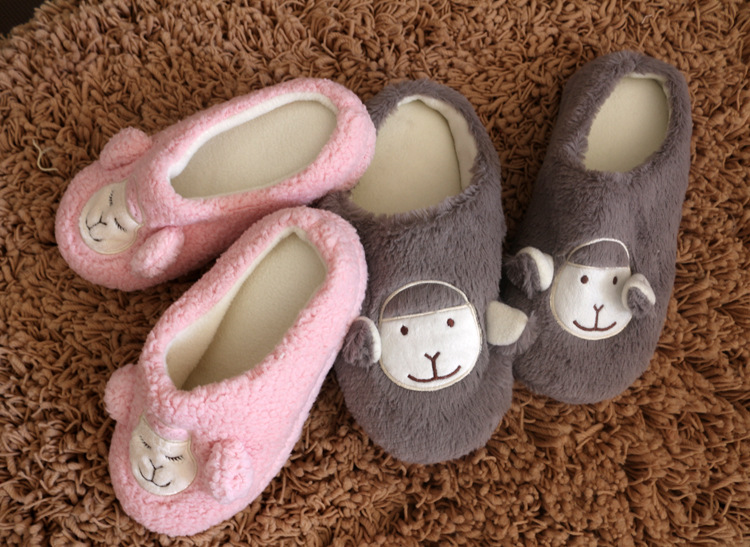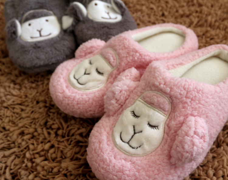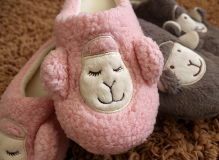 冬季粉羊駝***拖鞋半包跟男女情侶棉拖鞋居家鞋棉鞋地板鞋棉拖