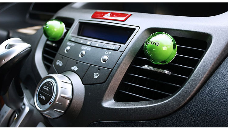 3、按汽車空調(diào)風(fēng)口扇葉的方向,將金屬夾適當(dāng)?shù)陌惭b在米奇粒粒香的背面并夾在出風(fēng)扇葉中。