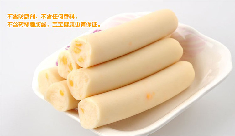 每根獨(dú)立包裝,易于保存。短小的設(shè)計,方便寶寶一次吃完,確保衛(wèi)生。寶寶配飯或單吃都適宜。手指般粗細(xì),方便寶寶抓握,也可切成小丁,培養(yǎng)寶寶撿拾能力。讓美味和營養(yǎng)加起來。