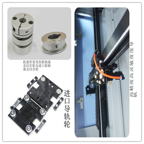 在機械部分選 擇進口航空導軌,該航空導軌滑塊裝置有特殊的調整校準方式,所以在切割的過程中能夠有效的將已磨損的部分進行重新調整,確保了激光頭在運轉中平滑 、高速、不跳動、具 有切縫小、切口平滑、速度快、精度高的特點。