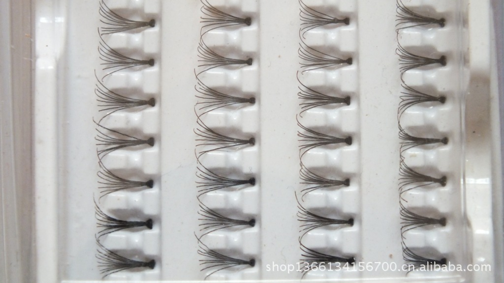 半手工睫毛:前幾道工序是用機(jī)器,后面兩道工序也是人工制作,睫毛成品 相對平整,好看。