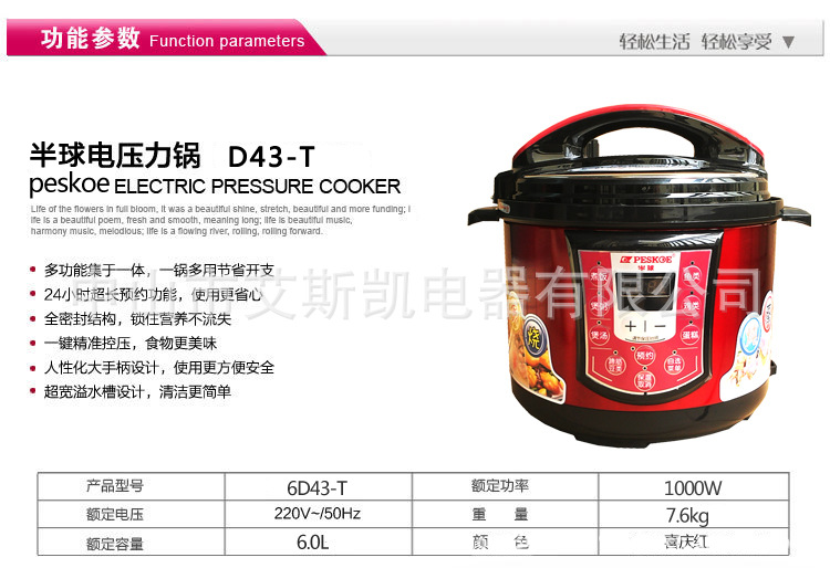 2.選購電壓力鍋的規(guī)格應考慮人口數(shù)量,2-3人的家庭宜選4升的,3-5人的家庭宜選5升的,6人以上的家庭宜選6升或8升的。
