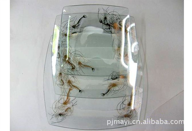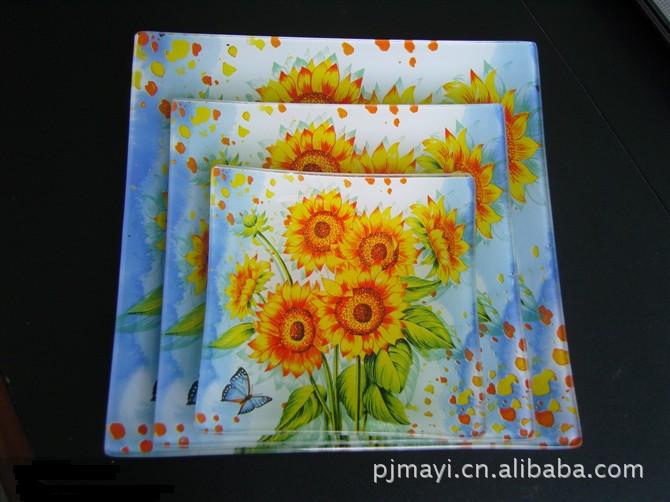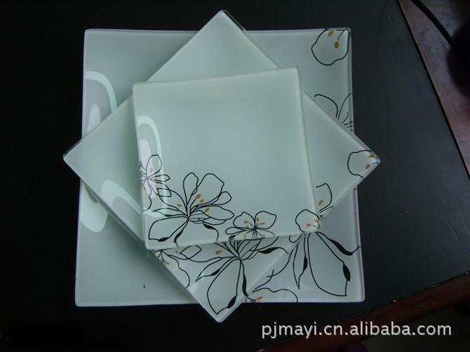 我廠生產的鋼化玻璃盤外表精美、高檔、用途豐富、花色品種繁多。花色耐高溫350度,急冷急熱180度,適合在烤箱里面用,急冷急熱沒問題,一般的玻璃產品是無法解決的;透明度高、無模具痕跡、易清潔、耐沖擊,強度是普通玻璃的5-6倍,可以1.2米的高度,掉到水泥地上不會有破損、蹦邊、缺口等現象,高溫釉料,色澤艷麗。微波爐中使用,加熱不燙手,吸收微波極少,省電節耗。是微波爐、烤箱的理想產品。產品遠銷世界各地二百多個國家和地區,深受國外客戶的好評。我廠可以按照貴公司提供的數據要求訂做。