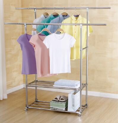 不銹鋼晾衣架,是上下伸縮設計,可掛放或晾曬衣服一舉兩得,安裝簡便,方便移動。