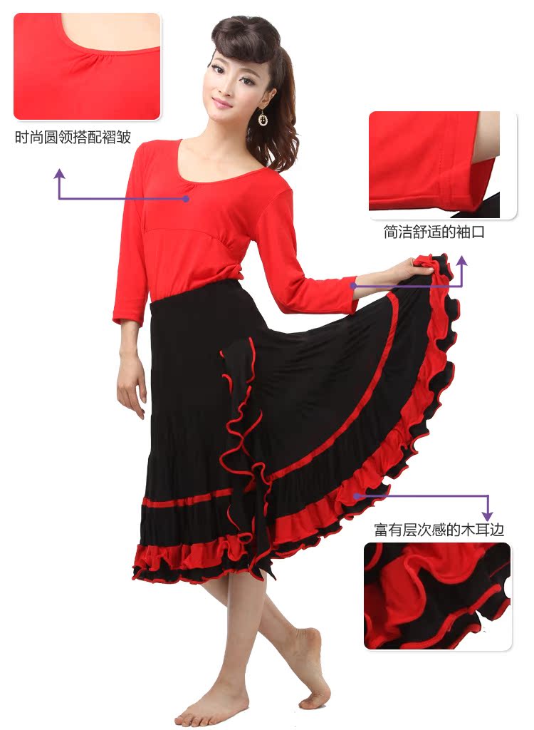 【產(chǎn)品描述】:超大超有質感和垂感的牛奶絲廣場舞蹈裙,牛奶絲極富彈性,舒展自如,透氣吸汗,保護肌膚,不易變形,時尚耐穿,超大的裙擺讓您在舞動的同時更具韻味。