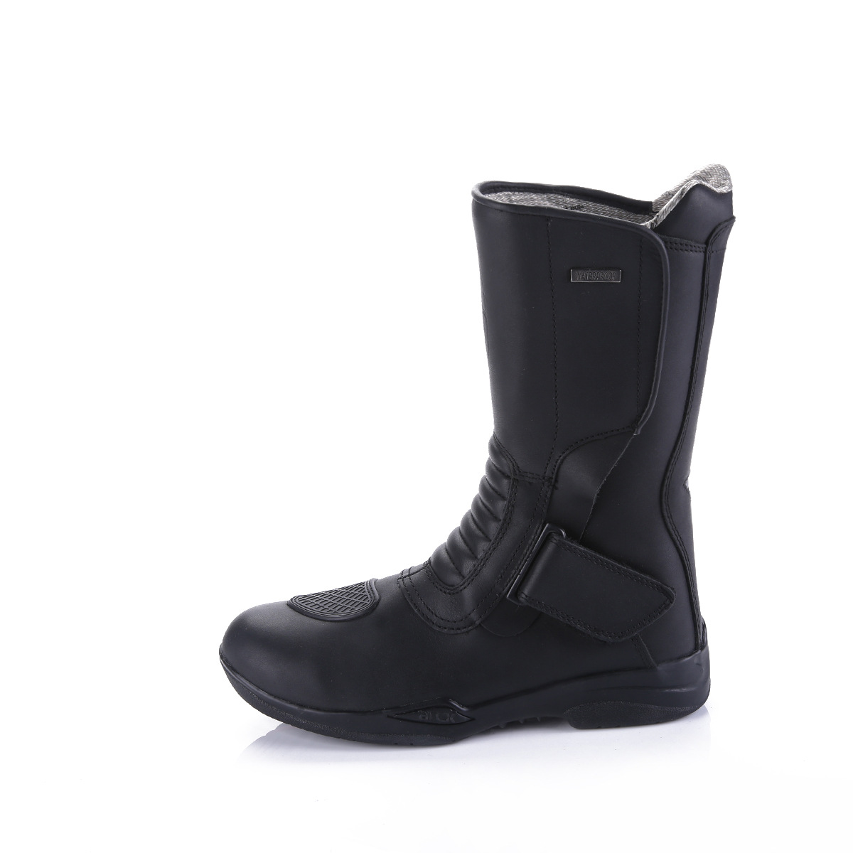 機車靴”即“摩托車靴”。摩托車靴是摩托車手所穿的靴子,對摩托車駕駛的安全起到重要的作用。摩托車靴的靴筒高度一般是從腳踝開始到膝蓋以下的小腿部分,鞋跟較低。為了提高摩托車駕駛的安全性,摩托車靴一般以厚重的皮革為原材料來制造。同時也會使用一些緩震材料、金屬、塑料以及復合材料,來保障摩托車手在駕車時足部、踝部以及腿的安全。有些靴子還會添加防水材料以便靴子能在潮濕環境及雨天使用。